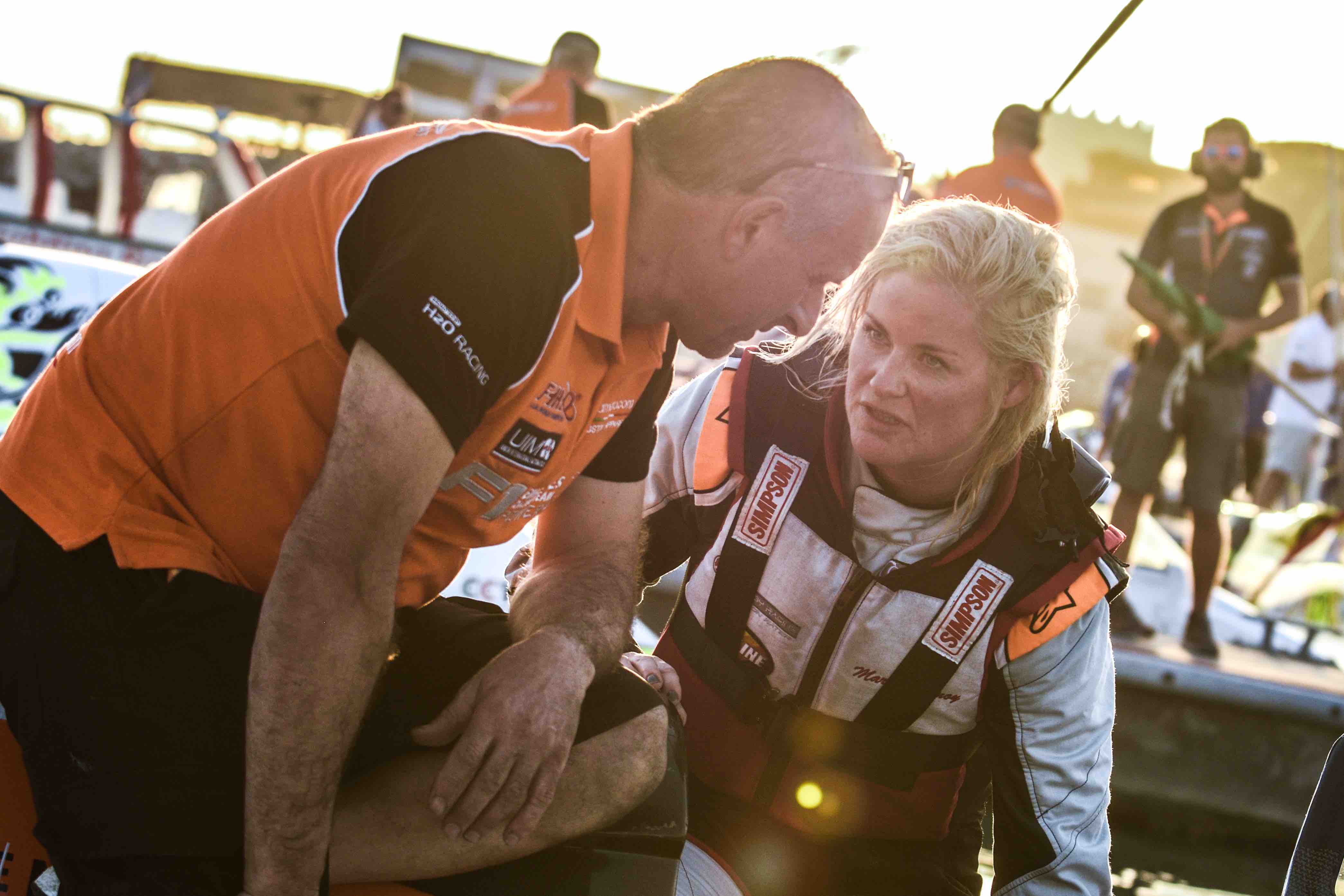 In the challenging conditions in Sharjah, the top drivers were fighting for positions from the start of the qualifying. Q1 was rough and all the boats were on the water. The crowd could see even the current championship leader Alex Carella struggeling to get into top 12, but by the end of the session he got to show his true potencial and was fastest. Marit finished Q1 in 11th and that got her into the next qualifying Q2.