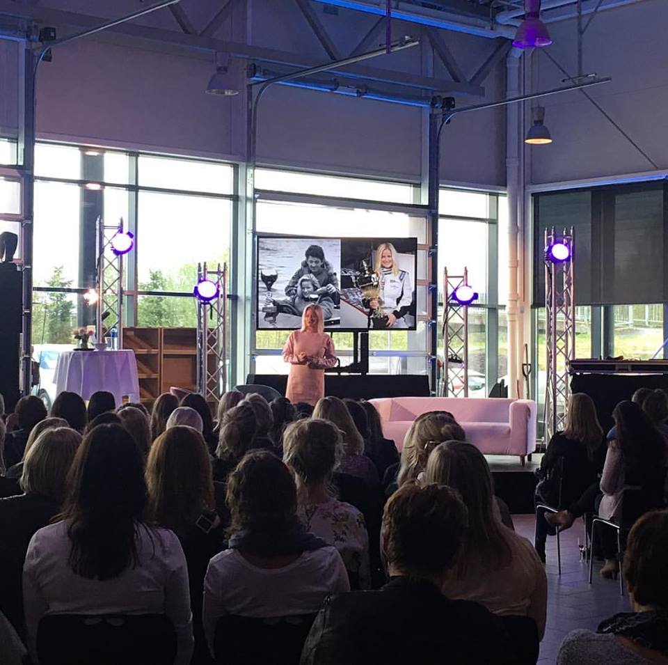 Motor-Trade, one of Norway's biggest Merchedes dealers, had invited three women to speak about their untradiotional choces and lifestyles in an event called Power and Passion. The event was organized by Engasjert Byrå, and Marianne Danielsen hosted it in style. Gro Eide, the media manager of the Norwegian Cross Country Ski-team, spoke about her challenging job of supporting and managing the skiers in their relation with the media. Camilla Okkerhaug, one of very few female car-saleswomen, gave some stories from her work. Marit held a 40 minute presentation of her life as a F1 H2O powerboatracer. Her main request from the women in the audience was to challenge themselves and go out of their comfortzones. The 250 women present also got to experience the F1 racer singing.